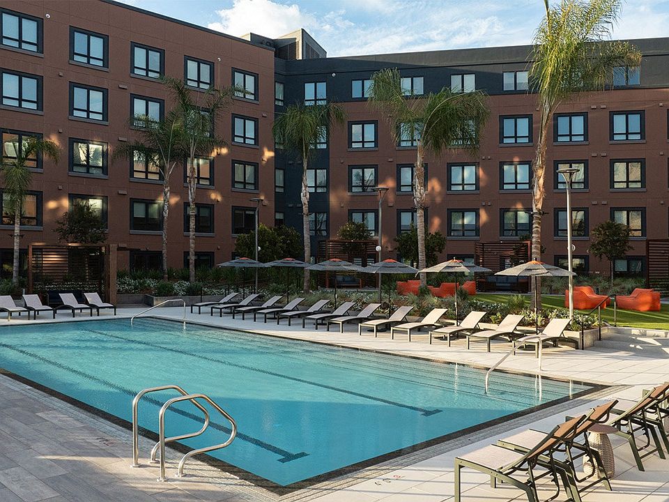 - Exterior features: Availability 24 Hours, BBQ/Picnic Area, Bathrooms with Tiled Shower & Tub Surrounds, Bicycle storage, Bike & Pet Wash, Bike Sharing, Building Wi-Fi, Business Center, Car Sharing, Courtyard, EV Charging Stations, Efficient Appliances, Free Weights, High-speed Internet Ready, Integral Undercabinet Lighting, LED Lighting, Light & Dark Designer Finish Packages, Media Room, On-Site Maintenance, On-Site Management, Package Receiving, Private Dining Area, Quartz Countertops with Full Height Backsplash, Roller Shades, Sundeck, TV Lounge, View Type: View