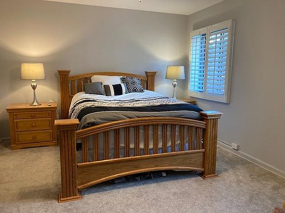 - Bedroom: Queen Bed, dresser, nightstands, and a large walk-in closet