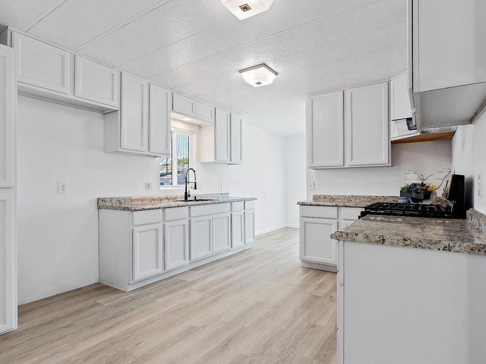 Welcome to the epitome of comfortable and modern living for seniors in this beautifully updated home, nestled in Westgate Village Mobile Home Park. This thoughtfully remodeled residence offers the perfect blend of convenience and style. Step inside this meticulously updated home, where modern amenities and senior-friendly design elements harmoniously come together. The spacious living area is bathed in natural light through the brand new windows, creating a warm and inviting atmosphere for relaxation and entertaining. Enjoy the convenience of an open floor plan that seamlessly connects the living space to the fully renovated kitchen, complete with contemporary appliances and ample storage. The bedroom spaces are designed with seniors in mind, offering easy access and comfort. Modern fixtures and thoughtful touches enhance the overall aesthetic, creating a welcoming retreat after a day of leisure at the pool or social activities at the clubhouse. One of the highlights of this home is an enclosed porch with a gate, providing a secure outdoor space for you and your beloved pet. Let your furry companion roam freely, enjoying the fresh air and sunshine in this charming pet-friendly environment.