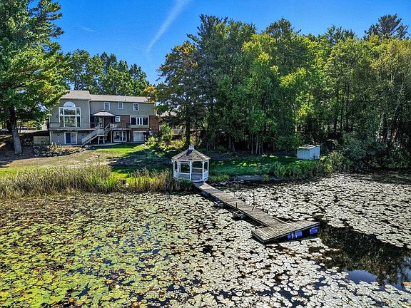 Discover this spacious colonial home perfectly situated on a rare 6-acre parcel along the shores of Grampian Lake. Offering a unique blend of privacy, space, and breathtaking water views, this property is truly one of a kind. Step inside and be captivated by the expansive great room featuring soaring 20-foot ceilings and large windows that frame the lake and flood the space with natural light. The open, flowing layout is ideal for both everyday living and entertaining, complemented by expansive wood decking that invites you to relax and take in the peaceful surroundings. The home boasts generously sized bedrooms, including a massive primary suite designed as a true retreat. A finished walkout basement with a convenient half bath provides additional living space, perfect for recreation, a home gym or work space. Outside, multiple outbuildings add versatility to the property, including a pole barn with partially finished, non-permitted work—ideal for storage, hobbies, or workshop space. With its unmatched acreage, serene lake frontage, and versatile living spaces, this property offers endless possibilities for those seeking both comfort and opportunity.