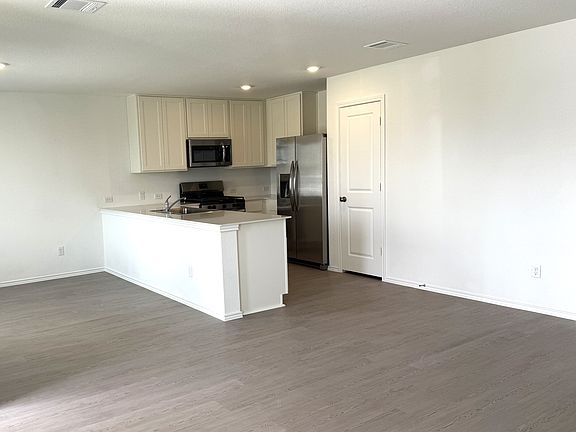 The open concept living area features a game room, modern kitchen, dining area and a large living room, with a partially covered patio to accommodate outdoor entertaining. The home offers four bedrooms in total, including the owner's suite with a full bathroom and walk-in closet.