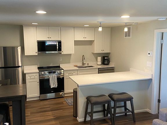 Welocome to this completely renovated 1 bedroom, 1 bath duplex near Old town Louisville. Within 1/4 to 1/2 mile of many great restaurants and stores. It features all the modern amenities you will need for a comfotable and relaxing stay. Brand new luxury vinyl flooring covers the entire home. It features an open plan kitchen with access to the living room. The kitchen has brand new cabinets and Quartz countertops and island with bar stool seating. If you are looking for a furnished rental the kitchen is completely stocked with new cooking accessories and has complete service for 8. The bedroom includes a king sized bed with a dressser/mirrror and two nightstands. The walk-in closet is equipped with a full sized washer and dryer. The living room is decorated with stylish furniture that includes a couch, chair, coffee table, end table and entertainment counsel with a 46" smart TV. The bathroom has a tub-shower combination with a new single vanity with ample storage. Full length black-out curtains cover all the windows for added ambiance and privacy. All utilities included , High speed Wi-Fi is included for $2095 per month.
