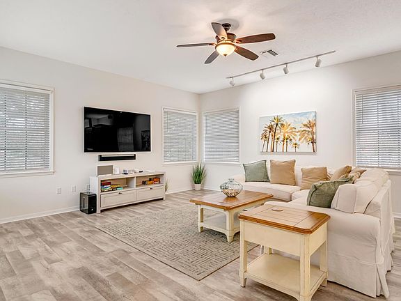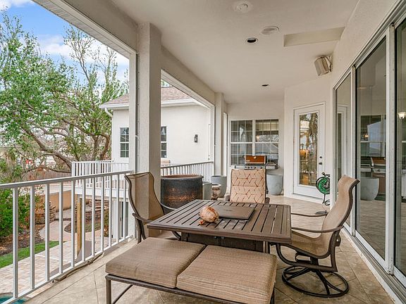 Step out to the balcony to overlook the pool area, complete with included patio furniture and 2 fire pits with grills. The property is adorned with landscape lighting and freshly mulched.
