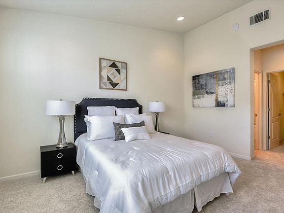 Beautiful end unit 2Bd/2Ba condo located in the well-kept Terra Serena gated community! All living space located on one level. BRAND NEW carpeting & high ceilings throughout the entire home. The Master suite is spacious & perfectly laid out. Master Bath includes dual sinks, soaking tub/shower stall combo & walk-in closet. The spacious Kitchen has an abundance of lighter cabinetry, tasteful tile counters, tile floors & black appliances, which includes a gas stove top, microwave & oven. Convenient Dining Area, private Balcony and Living Room sits adjacent to Kitchen. The large 2nd bedroom is down the hallway, along with the secondary common Bathroom & upstairs laundry area. 2car attached Garage has built in car charging station and is situated next to the bonus storage room. Community offers optional Fiber Optic Internet, pool, SPA, clubhouse & play area. Adjacent to 6 acres of park w/ walking trails, BBQ area, tennis & basketball courts. Minutes away from Great Mall, light rail & BART!