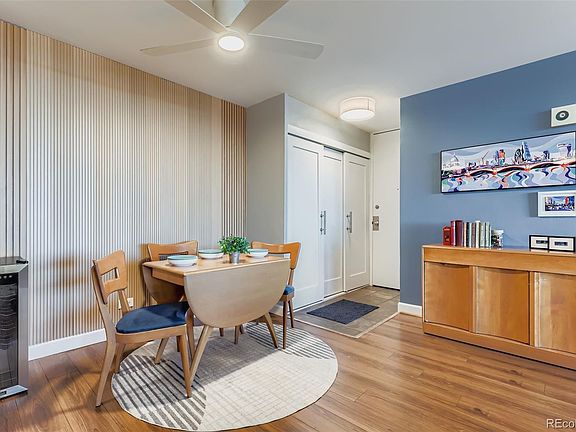 LOCATION & VIEWS! Experience elevated city living in this sophisticated Cheesman Park condo, perfectly perched on the 8th floor with breathtaking east-facing views toward Congress Park and the morning sunrise. This beautifully remodeled residence blends modern comfort with refined style—featuring 9-foot ceilings, ambient lighting, wide-plank vinyl flooring, tall doors, and tinted patio doors that open to your large private balcony which is accessed from both the living room and the bedroom. Offered as a true turnkey opportunity, all furnishings are negotiable—ideal for those who appreciate a thoughtfully designed and move-in-ready home. The open-concept living and dining areas exude warmth and comfort, providing the perfect setting for entertaining or relaxing after a day in the city. The updated kitchen boasts new appliances and ample space for a gourmet cooking experience. The bedroom has been reimagined for functionality and flow, with an expanded closet relocated to the hallway just outside the double-vanity bathroom—offering a more spacious and efficient layout. Central air and ceiling fans provide year-round comfort and cool summer breezes, while the included heat keeps things cozy on those chilly nights. Residents also enjoy access to the penthouse level, which features a beautiful year-round rooftop indoor heated pool, clubhouse, expansive decks, and panoramic views of the Denver skyline and beyond. Additional highlights include a reserved, gated parking space equipped with a personal Electric Vehicle charging station—perfect for today’s modern lifestyle. Step outside and find yourself within walking distance of the Denver Botanic Gardens, local restaurants, boutique shops, and of course, beautiful Cheesman Park itself. A rare opportunity to own a truly stylish city retreat in one of Denver’s most coveted neighborhoods—don’t miss this Cheesman Park gem.