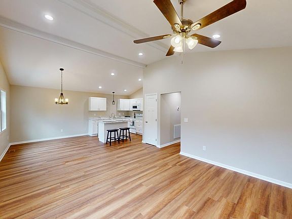 - Beamed Ceilings, Ceiling Fan(s), Kitchen Island, Open Floorplan, Pantry, Recessed Lighting, Vaulted Ceiling(s), Walk-In Closet(s)
