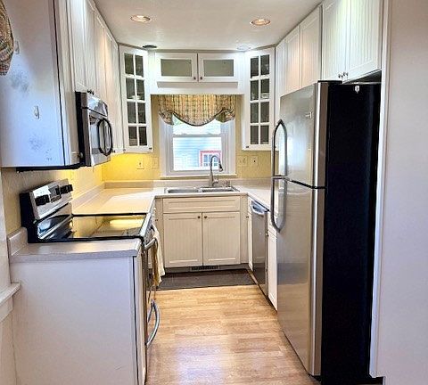 Updated half bathBeautiful natural woodworkDual sinksFront porchUpdated kitchenBacks up to woodsWood burning stove