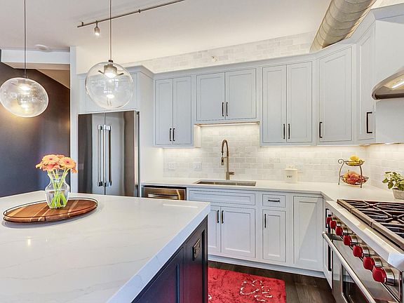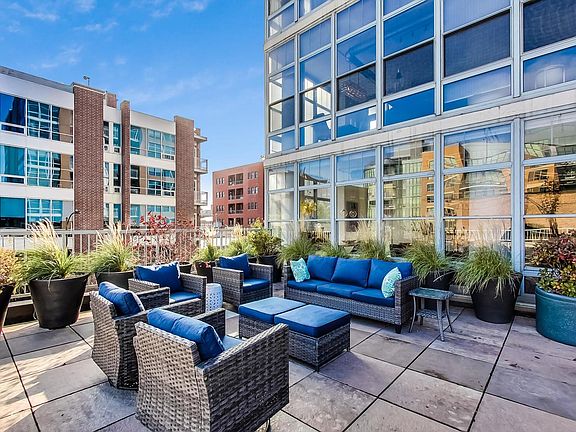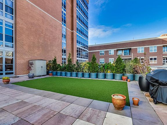 One of a kind condo in the heart of the West Loop. Incredible and unique approximately 2,000 square foot private terrace off the living room with a built-in irrigation system, newer floor tiles and turf area, and 2 sheds to store gardening equipment. Additional smaller private deck off the dining room provides a second outdoor space. Current owners were not intending to sell and spared no expenses when making recent updates. Beautiful dark engineered hardwood floors throughout the living room, dining room, kitchen, entryway, and hallway. Amazing windows from floor to ceiling with northern and eastern views. Beautifully updated kitchen with white cabinets, quartz counter tops, backsplash marble tile from Turkey, and soft close drawers. Island cabinets are a unique black with double thick quartz counter tops and room for stools. Appliances have all been updated with top-of-the-line choices including a quiet Bosch dishwasher, Wolf microwave and Bosch refrigerator with water dispenser and ice maker inside the freezer. Chef quality Wolf gas range and Zephyr exhaust. Touchless faucet and under and over cabinet lights top off this amazing new kitchen. Solid walnut floating shelves with lights underneath surround the amazing gas fireplace and creates a very peaceful atmosphere. TV above the fireplace swivels and can be seen from kitchen, living room and dining room and this will stay with the sale. New Restoration Hardware sconces in the hallway, pair well with Tech Lighting globe pendants in dining room and kitchen that project a floating ball of light within each globe. Most lights on dimmers and most rooms have been freshly painted. 42-inch European Home gas fireplace with custom brushed steel finish, one-piece surround. New carpets in the primary and guest bedroom. Primary bedroom has room darkening shades, a ceiling fan and three great sized closets. Primary bathroom has double sinks, a shower, a large soaking tub and a linen closet. Guest bedroom is spacious and has enough room to serve as a home office as well. Amazing north view over the private patio space. Great closet space. Guest bath has an updated shower. Laundry closet with stackable washer and dryer and new Trane furnace. Entry coat closet. No weight limit for pets, but limited to 2 per unit. Great location steps away from downtown, shopping, restaurants, public transportation, the highway, dog parks, parks, schools and so much more. Assigned and heated indoor parking spot and assigned storage spot in basement. 24-hour doorman, elevator building and gym in the building. Rentals allowed. Sellers offering $5K towards closing credits.