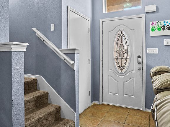 The master suite upstairs stands out with its dedicated loft, an expansive walk-in closet, and a full bathroom featuring dual sinks and vanities. Additional amenities include solar panels, water softener, refrigerated air and tile flooring, ensuring comfort and style throughout the home. Come see this home today!