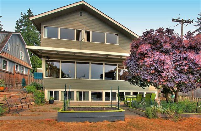 Expansive mid-century one-and-a-half story with full daylight basement. Wide open concept style with formal and informal living. Full wall of west-facing windows with views overlooking private backyard. Tons of natural light. Large stone fireplace is the perfect center piece for relaxing or entertaining. Mountain views and partial Sound views from upper floor with two bedrooms and 3/4 bath. Open light-filled lower level with interior and exterior access for flexible use. (Currently used as a very successful short-term rental (will provide financials), but could be used as additional living space.) Large eat-in kitchen and formal dining space. Updated kitchen with stainless and granite counters. Architectural plans available for potential expansion/remodel. Private. Quiet. Walking-distance to Carkeek Park. Owner is a licensed real estate agent so please no solicitations.