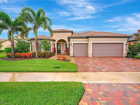Ideal for multigenerational living or seasonal retreat, this elegant waterfront Pinnacle floor plan offers space, privacy, and resort-style comfort with three spacious bedrooms (including two en-suites), three full baths, a versatile den, and an extended three-car garage. The open-concept design features floor-to-ceiling pocket sliders that open to a private lanai with a custom heated pool and oversized spa—perfect for relaxing or entertaining across generations. The gourmet kitchen boasts granite countertops, 42-inch off white cabinetry, a designer tile backsplash, premium stainless-steel appliances with wall ovens, a walk-in pantry, and a beverage bar with fridge. The luxurious primary suite includes a sitting area, spa-style bath with dual vanities and walk-in shower, and a custom-built closet. Additional upgrades include impact-resistant windows and sliders, electric roll-down Kevlar hurricane screens, a picture-frame lanai screen, coffered ceilings, crown molding, plantation shutters, and sleek plank tile flooring. Located in a vibrant, amenity-rich community with tennis, pickleball, bocce, a state-of-the-art gym, and a resort-style pool and spa, the HOA also covers cable, internet, lawn care, and exterior pest control. Conveniently located near I-75, RSW Airport, upscale shopping, fine dining, and Gulf beaches, this partially furnished home offers the perfect blend of luxury, flexibility, and Florida lifestyle—ready to welcome you home