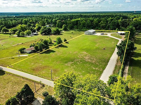 5 ACRES UNRESTRICTED located in SOUGHT-AFTER location and just minutes from I-45 with easy access to Lake Conroe & Montgomery. Fully cleared lot featuring a full air-conditioned 5,000 sq.ft. Metal Mueller Building/Warehouse. Warehouse features a commercial grade slab, 300 sq.ft office space, 2 half bathrooms, two 3-foot wide man doors, and three 14x15 foot roll up doors. 100x50 foot concrete pad for parking, separate 2,200 sq.ft. awning area on opposite corner of property used for storage and large enough to fit 2 RVs . This lot is the perfect set up for those who have future dreams of building or adding on as building is situated perfectly in the far corner of lot offering plenty of space for future additions. 3 Phase Power, Private well and septic Enjoy LOW TAXES and NO HOA.