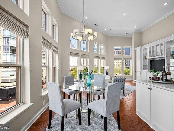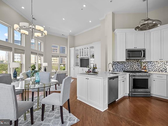 Now Presenting this Freshly Painted Largest Floor Plan 1,493 Sq. Ft. Penthouse Level and Fully Renovated 2 Bedroom / 2 Bathroom Condo with Den that includes Sixteen Foot Ceilings and THREE Dedicated Underground Garage Parking Spaces in Market Street at Town Center Condo building in the heart of the Reston Town Center. Upon entry to the condo, you are greeted by high ceilings, modern light fixtures, coat closet and extended tile foyer that leads to Rotunda passthrough. On each side of the Rotunda passthrough are two bedrooms with refinished hardwood flooring, large walk-in closets and modern ceiling fans. Primary bedroom includes fully renovated primary bathroom with modern step-in shower, expansive white cabinets and upgraded counters. Second fully renovated bathroom off second bedroom includes granite counters, tub/shower combo, tile shower and in unit washer/dryer closet with extra storage. Proceeding into the living space, the condo boasts a fully open concept living, dining and kitchen area also with refinished hardwoods that includes added recessed lighting and floor to ceiling windows that overlook the exciting bright lights, restaurants and parks at the Reston Town Center. Kitchen has been fully renovated with extended white cabinets, stainless appliances, honeycomb tile backsplash, custom storage/pantry space and quartz counters, including on the large kitchen island that overlooks the the aforementioned open concept floor plan. The living area includes additional upgraded storage in the showcased and expansive custom built-ins. Off the living room is a den with closet, that could be used as an office, nursery or third bedroom. HVAC was replaced in 2023. This property is right in the middle of all of the action at the Town Center, is steps to Metro, a Capital Bikeshare Station, is nearby the RTC West expansion project and within close proximity to Dulles Airport. Do not miss this opportunity!