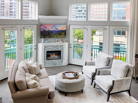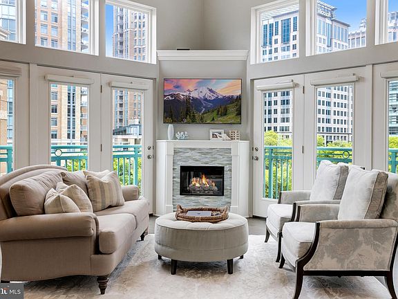 Step into this modern sanctuary, where tranquility meets elegance in this stunning 3-bedroom, 3 bathroom condo boasting breathtaking 2-story ceilings adorned with atrium doors, offering unparalleled views of lush green space, water feature, art feature, and pavilion known as Reston Town Square Park. The main level hosts two bedrooms, while the third bedroom is located on the second level with each bedroom in this condo featuring its own private en suite bathroom for added comfort and convenience. This meticulously renovated home incorporates upgrades throughout including beautiful hardwood flooring, plush carpeting, and appliances, ensuring both style and comfort. Enjoy the convenience of being steps away from outdoor concerts, restaurants, dine in movie theater, various retail shops, bakery, coffee shops, an ice skating rink in the winter and concert venue in the summer under the open air glass pavilion. Reston Town Center events are planned all year. Take advantage of easy access to Reston's metro stops, with one in close proximity, and enjoy life in a planned community which includes 55 miles of paved walking trails. This condo offers the perfect blend of luxury, convenience, and accessibility. 2 underground parking spaces are conveniently located next to the elevator, providing direct access to your front door. There's a private storage unit available to you for any excess belongings. Market Street at Town Center includes its own private amenities such as fitness center, community room, internet center, and pool."