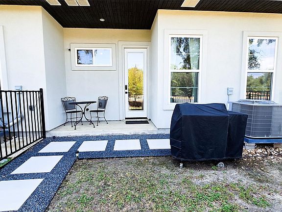 Natural, bright, and peaceful, inside and outside the home, describes this beautiful townhouse located in The Heights at Vista Parke. It is surrounded by the beauty of the Balcones Canyonlands Nature Preserve and located in the Four Points vicinity. Conveniently located to Lake Travis, Lake Austin, restaurants and shopping with easy travel to downtown Austin. Leander ISD stellar schools include Grandview Hills Elementary, Four Points Middle and Vandegrift High. The xeriscape entrance invites you into this generously sized two bedroom, two full bath, soaring ceilings, 8' doors, open floor plan to create a zen-like home feel. The warm, natural luxury vinyl flooring is throughout the home with designer tile flooring and backsplash in the bathrooms and kitchen. The windows allow nature to be part of the kitchen, living and dining experience as you enjoy the cozy fireplace. It has a one-car garage with storage, a driveway, and ample parking. The backyard is surrounded by trees, lush greenery and a black wrought iron gated fence with professionally maintained landscaping. Enjoy a peaceful walk with your family or pets in the surrounding nature trails or landscaped dog park. Sit by the firepit, serene outdoor clubhouse, or picnic area and enjoy the ambiance of nature with family and friends.