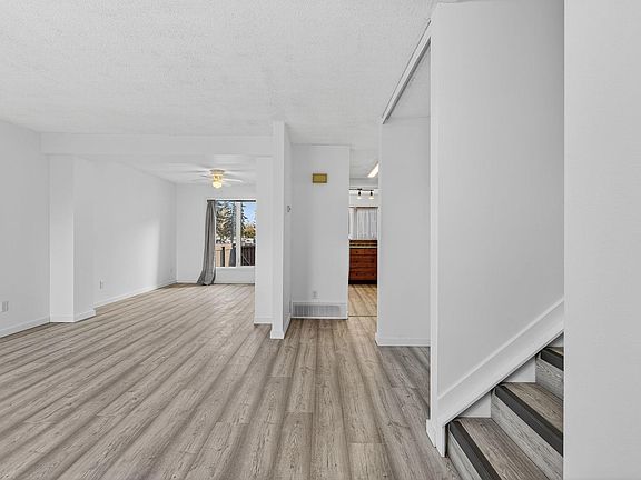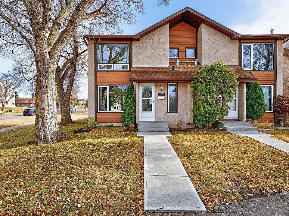 Welcome home to this bright 1,223sq ft end-unit townhouse backing greenspace in Dunluce, with two parking stalls in front. Step inside to find large windows filling the main floor with natural light. Easy-care flooring flows through the home and with no carpet anywhere it's perfect for the family with a busy lifestyle. The open living room connects seamlessly to a generous dining area, ideal for entertaining. The kitchen offers plenty of cabinetry, counter space, and a cozy eat-in nook. A convenient 2-piece bath completes the main floor. Upstairs, discover three bedrooms including a large primary suite with full-length closets, plus a 4-piece family bath. The fully finished basement adds a rec room, flex space, and tons of storage. Outside, enjoy a private fenced yard—great for summer BBQs. Located across from a park, within walking distance to schools and playgrounds, and minutes from shopping, dining, and transit—this is comfortable, convenient living at its best! A must see to truly be appreciated.