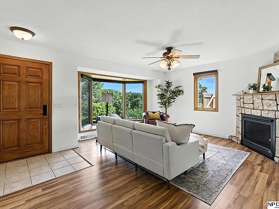 Charming Ponca Hills Retreat - Nearly 1/2 Acre! Nestled in a serene, tree-lined setting, this raised ranch offers privacy & country charm just minutes from I-680. Spacious 3 bedroom/2 bathroom. Enjoy a grand master suite with vaulted ceiling, walk-in closet, 3/4 BA & sliding doors to a private deck. Main bath boasts whirlpool tub & double sinks. Open living room w/ fireplace & bay window flows into a modern kitchen with ample white cabinetry. All appliances, including washer/dryer, stay! Newer vinyl wood floors, fresh paint & trim throughout. Lower level rec room with newer LVT. Entertain on the large covered deck or raised deck. Storage shed included. Don’t miss this unique gem! AMA