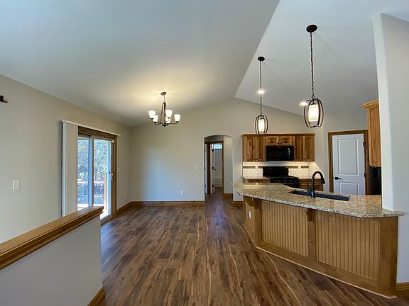 Back on market at no fault of the seller! Welcome to this move-in ready, one owner home at the end of a quiet cul-de-sac! This open, split bedroom floor plan creates an inviting living area with vaulted ceiling and traditional wood details. The main floor features LVP flooring throughout the main living area (looks like wood but easier to care for!), granite counters, ORB hardware, several ceiling fans, 3 bedrooms, and two bathrooms. The master suite features a vaulted ceiling, large picture window, two closets, and luxury private bath with tile shower, two sink granite vanity, and built in storage bench and floating shelves. The mid-level walkout basement features a large rec room with full wet bar, two bedrooms, and one bathroom. Exit the dining room to the covered deck, or walk down half the stairs to the mid-level walkout to the huge patio. The outside also features an irrigation well and sprinkler system with a beautiful view of the wooded lake.