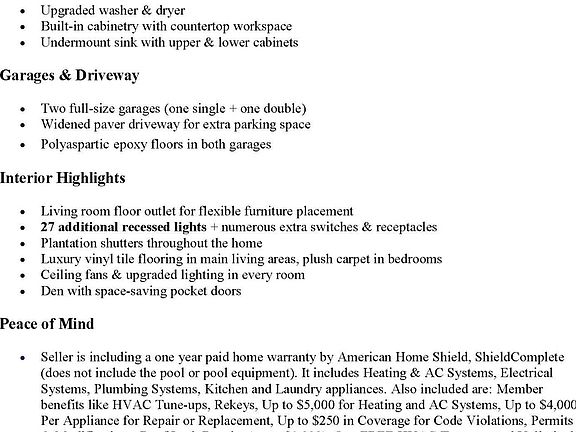 As an added benefit, the Seller is including a one-year American Home Shield ShieldComplete warranty for the buyer's peace of mind (pool and pool equipment not included).