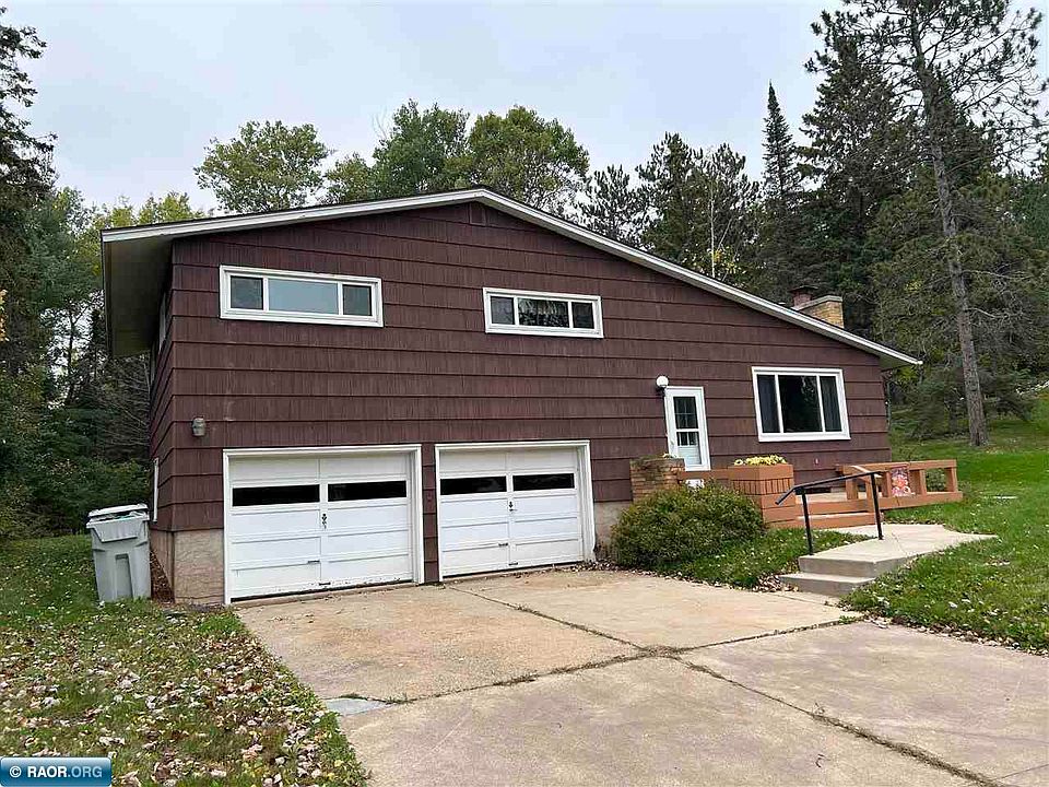 Beautiful architecturally unique home with spacious, open interior. Three bedrooms and bath on upper level above tuck under 2 stall garage. Large 1 acre+ wooded lot on a very desirable area of town. Public property behind this lot with lots of hardwood forest to explore. Landscaped yard with deck and patio. This home has been owned by current owners for many years and has been loved and cared for. Very large, ready to be finished off lower basement area. This home is move in ready and perfect for YOU!
