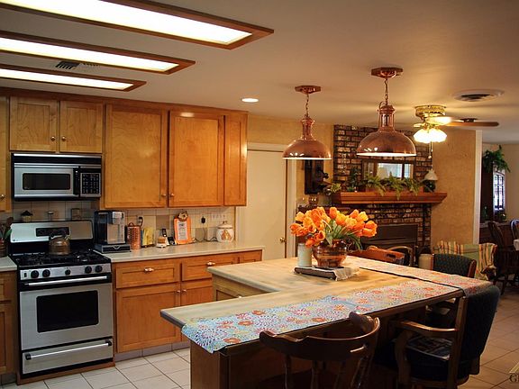 SHOP has 3 14' High Roll up Doors. Spectacular Home w double door entry. Gorgeous Remodeled Chef Kitchen - Corian Counter w/tile backsplash, never run out of custom storage space. Great for entertaining. Large Tall L shape Island to serve guest or your family dinner. Beautifully manicured corner lot. Covered Patio w/flood lights and Gas Hook UP Double Gate Entry to SHOP 1750' equipped with cable, Full bathroom, and so so much more, Zoned RS for Horse. RV Slap with hook ups and its own septic Over 1/2 Acre