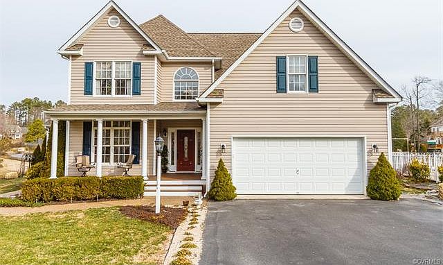 Come check out this move-in ready, lake view home of St. Regents Lake subdivision in Midlothian. This two-story, 5-bedroom home has fresh paint, hardwood floors and crown molding throughout the first floor. The spacious kitchen is complete with a walk-in pantry, granite countertops, oak cabinets, tiled backsplash that leads into a breakfast nook. The upstairs features 3 bedrooms with lake views and a master that has two closets and an attached en-suite bathroom with ceramic tile, jetted tub and a stand-up shower. There is also a large pull-down attic for tons of additional storage space. This is a great home for anyone who loves spending time outdoors. Enjoy more lake views from an attached screen in porch or outdoor entertaining from the concrete patio that will lead you to the dock down by the water. The property also borders a common lot that cannot be built on for additional privacy.