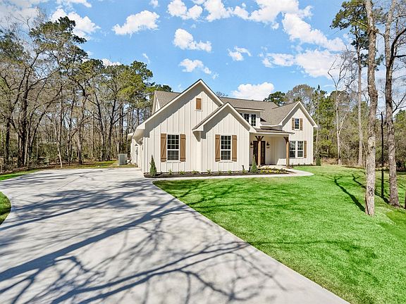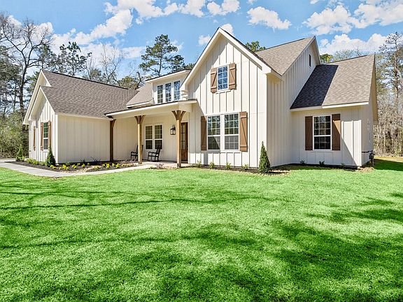 Stunning custom home on 1+/- acre lot in White Oak Estates! No detail has been missed! Gorgeous front porch featuring Cedar posts and metal roof! Entry featuring beautiful stained double doors, wood look tile floors, custom fixtures, and shiplap accent wall. Custom built barn doors lead to the spacious study/office overlooking the front yard. XL living room with stunning chandelier, gas log fireplace, custom built-ins, and incredible views of the enormous backyard! Island kitchen with quartz countertops, stainless appliances, soft close cabinets/drawers, undermount sink, wine bar, and coffee bar! XL breakfast area overlooking the backyard. XL primary suite featuring tray ceiling! Primary bath featuring dual vanities, huge frameless walk-in shower, stand alone tub, and custom fixtures! Enjoy your morning coffee on the back patio (plumbed with gas for outdoor kitchen) while watching the deer play! Home has 8ft doors throughout! Don't miss out on this one of a kind custom home!