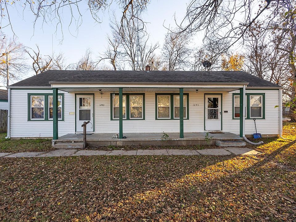 THIS PROPERTY IS BEING OFFERED IN A MULTI-PROPERTY AUCTION VIA LIVE STREAM WITH REAL TIME BIDDING, AUCTION BEGINS AT 10:00 AM ON SATURDAY, DECEMBER 13TH, 2025. ONLINE BIDDING IS AVAILABLE THROUGH SELLER AGENT’S WEBSITE Property is selling with clear title at closing and no back taxes. Property previews available. NO MINIMUM, NO RESERVE!!! This duplex, with 1-bedroom, 1-bathroom units, sits on a corner lot and features a covered front porch with separate entrances, individual fenced back yards, and a driveway with a 1-car detached garage, and is selling to the highest bidder, regardless of price! The layout for each unit includes a living room, a kitchen with an eating area, and a laundry/mudroom with backyard access. The bedroom has two nice windows and the adjacent bathroom with a tub/shower combo. Unit 1201 - Currently rented for $400/month with an expiration date of 04/01/2026 Unit 1203 - Vacant Don't miss this terrific opportunity! *Buyer should verify school assignments as they are subject to change. The real estate is offered at public auction in its present, “as is where is” condition and is accepted by the buyer without any expressed or implied warranties or representations from the seller or seller’s agents. Full auction terms and conditions provided in the Property Information Packet. Total purchase price will include a 10% buyer’s premium ($2,500.00 minimum) added to the final bid. Property available to preview by appointment. Earnest money is due from the high bidder at the auction in the form of check or immediately available, certified funds in the amount $5,000.