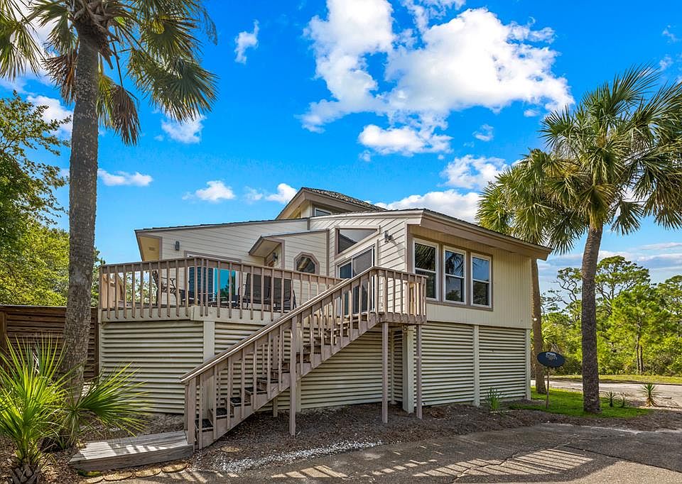 *Charming and Affordable Beach Retreat Located in Gated Community* Discover your perfect coastal escape with this delightful 2-bedroom 2-bathroom beach house nestled within the coveted gated community, St. George Plantation, on St. George Island, FL. Boasting vaulted ceilings and expansive porches this two-story home exudes a sense of spaciousness and relaxation. Enjoy peekaboo views of the Gulf of Mexico while savoring your morning coffee from your master bedrooms private balcony. The pristine beach is only a short 2-minute stroll away from the house, making every day a beach day! After a day in the sun, wash off sandy toes in your outdoor shower. Located just inside the gates of The Plantation, this home is ideally positioned only 2 miles from the islands downtown center, where you'll find local restaurants, boutique shops, and vibrant island culture. The gated community offers an array of amenities, including inviting swimming pools, a clubhouse with an exercise room, pickleball and tennis courts, and miles of scenic bike trails that wind through the natural Florida landscape. Whether you're seeking an active lifestyle or a tranquil retreat, this neighborhood has it all. Don't miss this opportunity to own a slice of paradise in an amazing location that offers the best of coastal living. New Buyer fee 0.50% of the purchase price to SGPOA.
