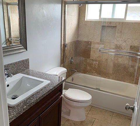 This unit is an upstairs unit, freshly painted with an updated kitchen, stainless steel stove, refrigerator not provided, but prior tenant is selling his. Nice updated bathrooms, walking closet in master bedroom, walking distance to dog park, shops and schools. Owner pays water and trash