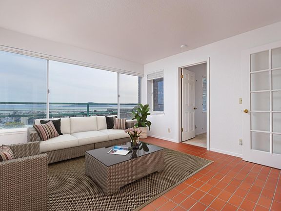 Welcome to 1201 Brickyard Way, Unit 205 an elegant and modern sanctuary offering breathtaking views of San Francisco, the Bay Bridge, and Angel Island. This spacious 1-bedroom, 1-bathroom condo spans 914 square feet, featuring a tastefully renovated bath and upgrades include: freshly painted, new carpet, power shades, and California Closets. Indulge in luxurious community menities, including an Olympic-sized pool, gym, tennis courts, sauna, and spa. Enjoy the convenience of two assigned garage parking spaces, with additional storage and elevators for easy access. EV parking is available, and a community garden offers space to cultivate your winter veggies and flowers. This property is perfect as a second home, pied-de-terre, for downsizing, or as a first-time home buyer opportunity