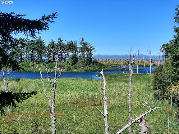 Welcome to this custom-built beach home perfectly situated on a desirable corner lot with views of both Garrison Lake and the Pacific Ocean. Whether you're seeking a full-time residence, a summer getaway, or a spot to host RV-traveling friends and family, this property has it all. Inside, the living room welcomes you with vaulted knotty pine ceilings, a warm fireplace, and picturesque lake views and its natural surroundings. The kitchen features quality hickory cabinets, while the bedroom includes tile flooring and a oversized wheelchair accessible roll-in shower. There's also room to add your personal touch, including space to build an interior staircase connecting both levels if desired. Outside, the home boasts two separate RV hookups, including one with 50-amp service, one 30-amp service, room for two RV’s one up to 45' or boat parking. An automatic lift from the lower to upper level enhances ease of movement. Additional features include a detached single-car garage and a 24' storage container providing ample storage for your beach and outdoor gear. This versatile lakefront gem is ready for its next chapter, make it yours and start enjoying coastal living at its finest.
