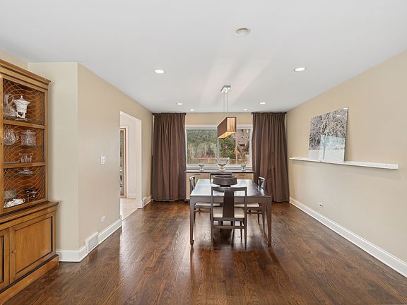 This fabulous home's spacious 2-story, light-filled foyer welcomes you with travertine tiled floors and a custom contemporary metal handrail. Large combined living and dining rooms with hardwood floors and windows overlooking both the front yard and fenced backyard provide wonderful entertaining space. The eat-in kitchen has sliders to the fully fenced backyard with gorgeous perennial garden (2020). Kitchen boasts loads of cabinet and counter space, gas cooktop, and new dishwasher (2024.) Separate family room has hardwood floors, newly re-tiled fireplace, fresh paint & sliders to the backyard, plus a convenient office nook! Huge main floor laundry/mud room with custom built-ins. Primary bedroom boasts plantation shutters, large organized walk-in closet and lovely expanded & updated bathroom with double sinks, newer skylight (2023-24), free standing tub & separate shower. The three generously sized family bedrooms all have custom organized closets. Updated hall bath with double sinks and shower. NEWLY finished basement with LVT flooring & fresh paint provides nice space for tv/entertaining/play space + separate room that can be used as an office. Updates: roof/gutters (2024), furnace (2020), water heater (2020), AC (2016) and sump pump (2024.) Garage refrigerator and outdoor shed included. A fantastic opportunity to live in a wonderful neighborhood near highway and tollway, elementary school (Wayne Thomas) and recently renovated middle school (Northwood), close to fantastic Sleepy Hollow Park. The neighborhood also features Danny Cunniff Park, which includes the most pickleball courts on the North Shore, tennis courts, plus baseball and soccer fields, disc golf course, expanded playground and Centennial Ice Rink. Also close to Highwood with its amazing restaurants/bars and train station. There is so much to love about this home and its location!