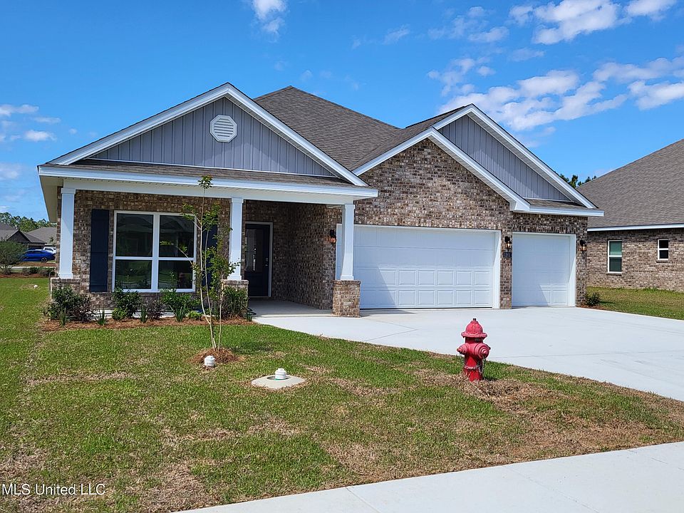 Back on the Market.... The ''Destin'' split floorplan with its spacious open living layout is perfect for entertaining. Features include single tray ceilings with crown molding, kitchen with island bar, designer soft close cabinets, quartz countertops, subway tile backsplash, farmhouse sink, formal dining, separate tile shower and garden tub in the primary suite. This energy efficient brick home includes a Smart Home package and warranties. Within minutes from all the Coast has to offer- beaches, casinos, shopping, military bases and more. Home is complete and move-in ready!