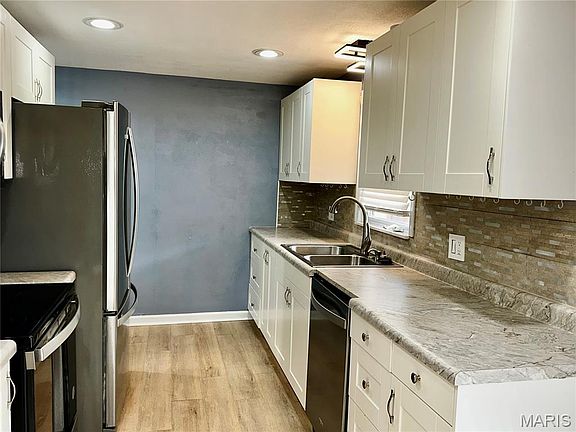 Welcome to 1201 Cherokee Street in Jackson, MO—a newly updated 3-bed, 2-bath home offering over 2,000 sq ft of total living space in the sought-after Jackson R-II School District. Situated on a .283-acre lot with a tree-lined backyard, this property delivers the perfect blend of comfort, privacy, and modern style. Step inside to a fully remodeled kitchen (2025) featuring new cabinets, countertops, backsplash, flooring, updated lighting, and stainless steel appliances—a stunning space designed for everyday living and effortless entertaining. Both bathrooms have been completely remodeled, showcasing walk-in tiled showers, plus a relaxing garden tub on the main level. The laundry area was relocated to the main level for ease. Enjoy peace of mind with brand-new renovations already completed for you—just move in and enjoy. The spacious backyard provides room to play, entertain, garden, or relax among the mature trees that offer natural privacy. A rare bonus, the property includes a detached rear garage with two garage doors—one sized for a vehicle or recreational storage, and the other ideal for lawn equipment, tools, or a workshop setup. Additional perks include a home warranty purchased by the seller and quarterly pest-control treatments for added protection. If you're searching for a beautifully updated home in a popular Jackson neighborhood with modern finishes, outdoor space, and unbeatable value, 1201 Cherokee Street is the one to see!