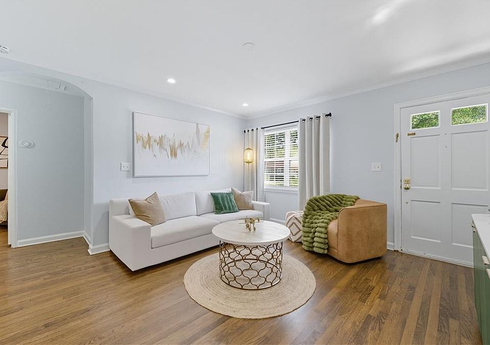 Welcome home to this stunning 2 bedroom/ 3 Full bathroom gem located in the heart of Smyrna. Village Oaks is a beautifully landscaped, fee simple community nestled within mature hardwoods. Walk to Smyrna Market Village shops, restaurants, library, community center, playgrounds/splash pad, Publix, and so much more. This end unit townhome with a basement is a rare find and a must see. On the main level, you'll find the Primary suite with newly renovated ensuite bathroom, an additional full bathroom, living room, kitchen w/ all new stainless appliances, and separate large dining area. Off the dining area is a large upper deck, overlooking the vast greenspace of the quiet community. In the basement, you'll find a large media room/flex space, bedroom, full bathroom, laundry room, covered patio, and 2 storage rooms. This is one of the few communities in Smyrna without rental restrictions! Low HOA dues...the HOA includes water, sewer, trash, and weekly landscaping. 1 assigned parking spot & ample street parking for an additional car/guests. Sidewalk access to both front door and back door of the unit from parking spot. Easy access to I-285/75, and Truist Park/Battery. Don't miss out on this unique opportunity to own in downtown Smyrna!