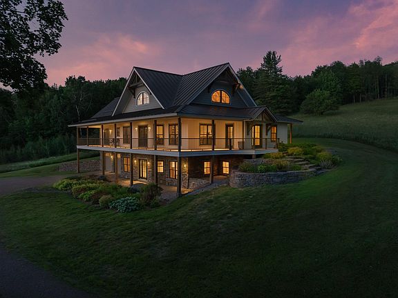 This exceptional, custom-built luxury home in the bucolic Mad River Valley offers sweeping, unobstructed views of Sugarbush Mountain and the breathtaking landscape beyond. Common Road is one of the area's most beloved walking and riding routes, sought after by locals and tourists alike for its gentle grade and beauty. Designed by Moore Design Builders for both comfort and sophistication, the interior features soaring cathedral ceilings, rich natural woodwork, and a chef's kitchen complete with built-in cabinetry and a wall oven. The home is highly energy efficient, built with insulation to Nome, AK standards and top-quality radiant floor heating. Entertain at the wet bar, enjoy the convenience of a dumbwaiter for groceries, and stay active year-round in your private home gym. The spacious primary suite provides a true retreat with a whirlpool tub and a rejuvenating steam shower. A separate wing of the house can be locked off, offering the perfect setup for an in-law apartment or private guest quarters. Step outside to the expansive wraparound deck, ideal for morning coffee or evening sunsets, while the patio provides ample space for grilling and entertaining. Additional features include a barn, garage, and attic space, ensuring plenty of room for all your storage needs. Sold fully furnished with custom or high-end pieces, this is Vermont living at its finest—private, peaceful, and perfectly situated to enjoy the best of mountain life.