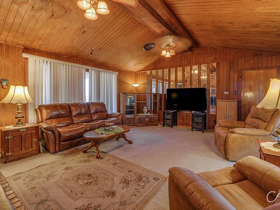 SOLD AS-IS. Welcome to the former Davis Ranch—86 breathtaking acres of rolling hills, wide-open skies, and unforgettable views. This 2-owner mid-century custom home offers 3 bedrooms, 3 baths, and an abundance of character, space, and potential. Step inside to find a warm and inviting layout filled with classic touches. The spacious living room features cedar paneling, soaring vaulted ceilings, and a stunning brick fireplace that anchors the space. The dining room impresses with floor-to-ceiling windows and its own vaulted ceiling, bringing the outdoors in. The kitchen boasts rough-cut cedar paneling, ample prep space, and a unique indoor JennAir grill—perfect for year-round cooking. A dedicated office with built-in desk and bookcases offers the ideal place to work from home. The amazing laundry room includes a sink, built-in desk, and plenty of extra room for storage or hobbies. This home features two primary suites. The main primary suite is exceptionally large with vaulted ceilings, a sitting area, and an ensuite that includes a soaking tub and separate shower. The second primary suite offers its own ensuite with a walk-in tub and beautiful vaulted ceilings accented with a wood beam. Off the dining room, enjoy peaceful mornings and evenings on the screened-in porch overlooking the property. A long pine-tree-lined driveway creates a grand entrance, setting the tone for the serenity and privacy that await. For those needing space for equipment, hobbies, or livestock, the property includes a 3,000 sq ft shop with partial electricity and outdoor pens. Additionally, the AC was replaced 5 years ago, and the water well will need a new pump. Whether you're dreaming of ranch life, a private retreat, or simply room to breathe, the Davis Ranch is a rare opportunity to own a truly special piece of land with a home full of craftsmanship, charm, and potential.