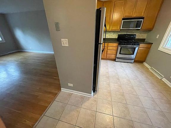 Fabulous Deerfield location! Walk to train, town and shopping. Sun drenched updated kitchen with granite, SS appliances, new tile backsplash and 42" cabinets. Hardwood floors on main floor with 2 spacious bedrooms upstairs with large closets and private bath. Escape to lower level family room with laundry and tons of storage. Unit has 2 assigned parking spaces. Walk out of kitchen to private patio where you can relax while you BBQ. Pet considered. Available now! Good credit and income required.