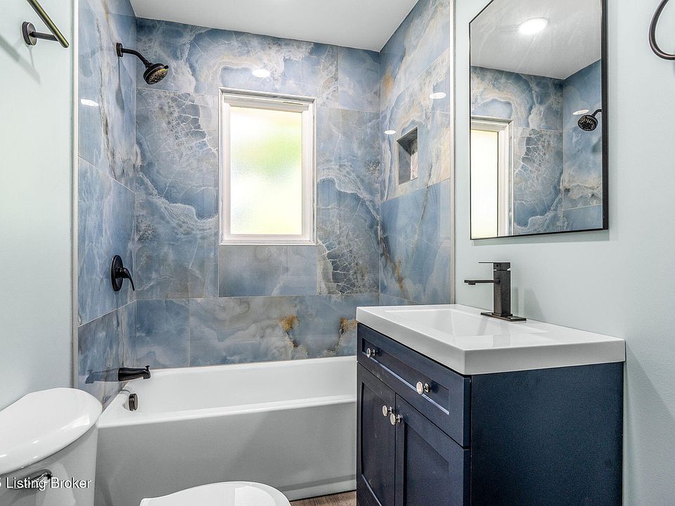 Welcome home! This charming, 3 bedroom, 2 full bathroom, all-brick ranch has been fully renovated, offering an exemplary combination of value, comfort, and efficiency rarely seen in today's competitive real estate market! Recent updates include: brand new roof (new shingles, vents, decking, reinforced truss framing, ice water shield); new gutters (french drain added for improved drainage outside and connected to the brand new 6 inch gutter system); all new exterior windows (luxury vinyl windows); all new floor system (floor beans, joists, and sub-floor); all new exterior wall insulation (used rock-wool, which is fire and sound proof and provides optimal comfort, performance, and economy); new blown insulation in attic (excellent package, above local code); all new exterior doors; new vapor barrier in crawl space; new foundation corrections and reinforcement, and storm water management and drainage surrounding the front of the house (inspected and approved by city inspector, 2025); all new HVAC system (along with pressure certified insulated duct work); brand new water heater; new plumbing throughout (insulated water lines installed along with manifold system, allowing each line to be shut off individually, w/ permits/inspections updated to 2025 code); brand new appliances (with one year warranty from manufacturer, beginning September 2025); new luxury plumbing fixtures throughout; all new electrical wiring throughout (complete rewire from the electrical meter, w/ permits/inspections and brought up to 2025 code); all-new (recessed) lighting fixtures throughout; all new drywall throughout; fresh paint throughout; all new interior doors and hardware; all new LVP flooring throughout; all new countertops/vanities; all new tile in the bathrooms; and much more! The interior sports a modern, yet cozy open-concept layout, with a spacious, naturally-illuminated family room flowing seamlessly into the immaculate, updated, eat-in kitchen, itself boasting recessed lighting above gorgeous white cabinetry and bold quartz countertops. A laundry room is conveniently located just off the kitchen. Past the family room is the expansive primary suite, offerings a large bedroom with a walk-in closet, as well as a fully-renovated primary bathroom, featuring a double vanity next to a gorgeous tiled, walk-in shower with a sliding glass door. A second full bathroom--also fully renovated--and two sizeable bedrooms complete the interior. Outside, you'll find a large driveway with ample parking, as well as a shaded front and backyard. Schedule your showing today!