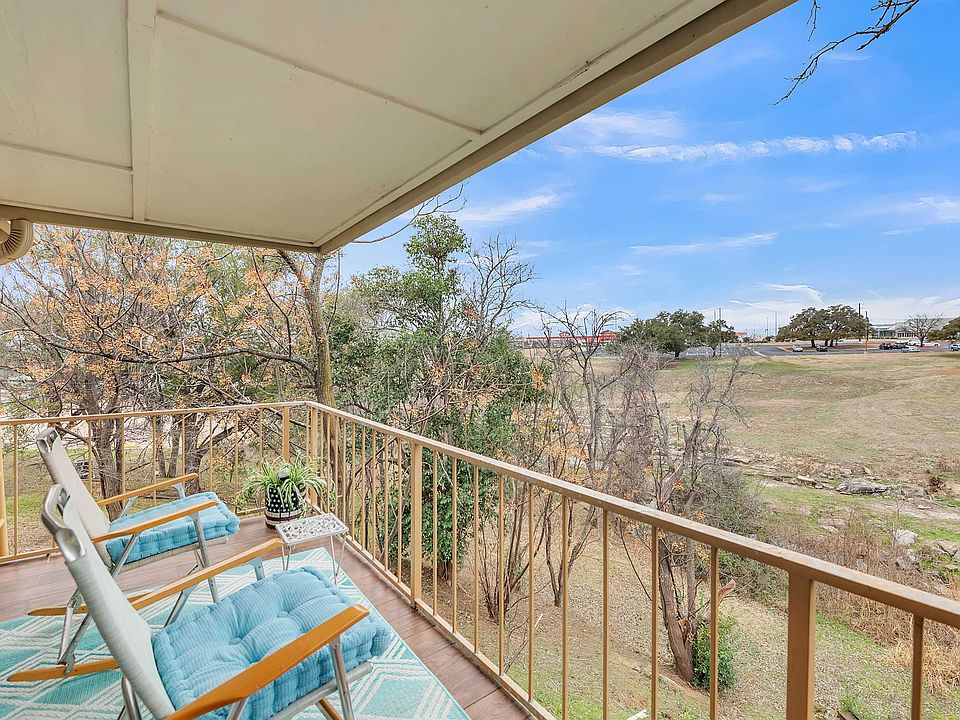 **OWNER FINANCING AVAILABLE***FULLY FURNISHED CONDO in the HEART of MARBLE FALLS, TEXAS! This hidden treasure has 1507sf with 3 beds and 2 full bathrooms AND large COVERED BALCONY with access from the LIVING AND the PRIMARY bedroom. Living Room 8’ glass sliding door WITH ELECTRIC SHADES provide views of a wooded draw. Front bedroom has an en-suite bathroom that also has HALLWAY ACCESS for guests. Secondary bedrooms have a well-designed jack and jill bathroom with a walk-in shower and separate sinks. Updates include plantation shutters, LVP wood-look flooring throughout; recent paint and recent appliances. Samsung STOVE WITH BUILT IN AIR FRYER; GE refrigerator and dishwasher; GE WASHER/DRYER COMBO UNIT in utility closet; all convey. ONE CAR GARAGE WITH OPENER included with Unit. Unit was occupied seasonally as winter retreat. SMALL CONDO REGIME; Dues $250/month. One block from HEB and ONE BLOCK from Hwy 281. Make this your new VACATION, STAYCATION RETREAT!