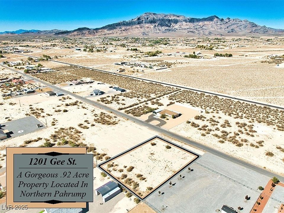 Welcome to 1201 Gee Street, Is An Exceptional .92 Acre Parcel Located In The Beautiful Northwestern Part Of Pahrump~~Nicely Situated In An Area With Attractive Homes On Other Large .92 Acre Properties With NO HOA~~Power Is Already To The Property Line & It Is Zoned For Private Well & Septic~~As With Most Pahrump Acreage, The Property Will Require Water Rights When You Are Ready To Drill Your Well, But Don't Let That Deter Your Acre Dreams As This Marvelous Parcel Is Priced Accordingly & Your Private Well Is Not As Complicated As It May Seem~~It Is Located Less Than 15 Minutes From Walmart, Home Depot & The Center Of Town~~Gorgeous Mountain Views & Amazing Sunsets Are In Your Future With This 40,000 Sq. Property That Allows For 2 Homes (With One Under 1,500 Sq. Feet) & It Is An Outstanding Choice For Your Pahrump Plans~~Ask About Lenders Offering Land Loans With 20% Down~~Drive By, Fall In Love & Make This Splendid Parcel Your Piece Of Pahrump Today!