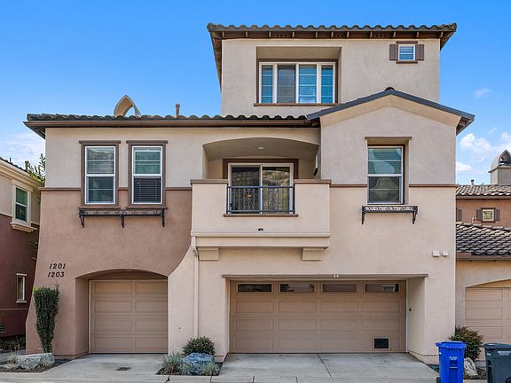 Welcome to this light-and-bright end-unit townhome in the gated Westridge community of San Elijo Hills. This three-story home offers approximately 1,111 sq ft with 2 bedrooms and 2 full baths. The main level features a bedroom and full bath for convenient single-level living, and the open floor plan invites natural light into the living and dining areas. Upstairs, you'll find the master suite with a private bath, as well as access to a covered balcony with a hillside view. Included is an attached one-car garage for ease and security. Residents also enjoy access to community amenities such as a pool and spa, all within a short distance of trails, shopping, dining, parks, and the vibrant San Elijo Hills Town Center. Modern comfort is ensured with central air and dual-pane windows for energy efficiency. This home offers a perfect blend of style, convenience, and community in one of San Marcos's most desirable neighborhoods.