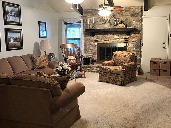 Very nice, well maintained Traditional home on a corner lot in the Starkey School area. This is a three bedroom, two bath, single story with two large living areas. One is a large Den and the other is a Living room with a wood burning fireplace. A breakfast area and a utility room off the kitchen.The kitchen has plenty of cabinet space for storage and all appliances will convey. It also has storm windows, screened in back porch, slightly terraced backyard and a low maintenance rock front yard. (Butcher block island in kitchen will not convey.)
