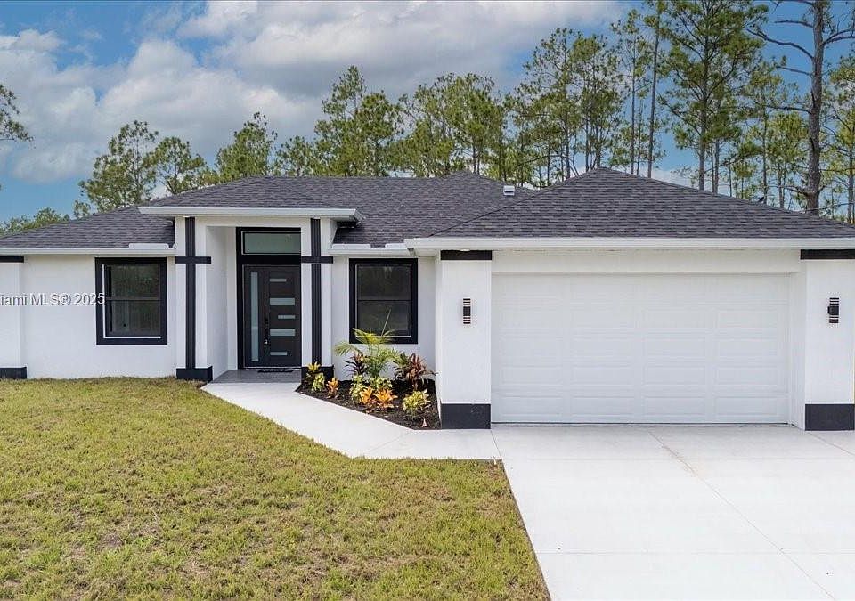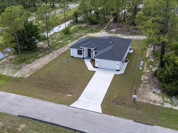 Stunning! new construction home on an oversized 0.62acre lot located at the end of a quiet street next to the canal in Lehigh Acres. This modern open-concept home features 3 bedrooms + DEN, 2 bathrooms, and a 2 car garage. Designed with high ceilings, abundant natural light, and elegant finishes throughout. The gourmet kitchen offers a central island, quartz countertops, and high-end stainless-steel appliances. The expansive lot provides plenty of room for a pool, outdoor living, or simply enjoying the privacy and peaceful canal views. A rare opportunity to own a stylish home with modern design, space, and a prime location! Seller will contribute $5,000 toward closing costs at the listed price.