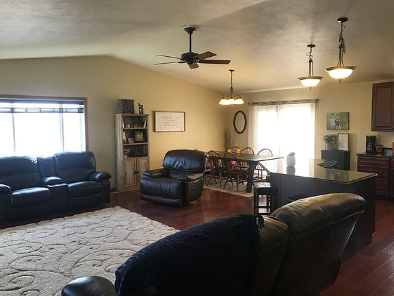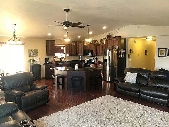 Beautiful newer construction family home featuring dark cherry kitchen cabinetry and flooring. This home has a great open concept and is in a family friendly neighborhood. There are 2 bedrooms upstairs and 2 bedrooms downstairs. The master bedroom is upstairs on the same level as the laundry room. Several upgrades we made in 2018 including: new kitchen appliances, RV/Boat concrete parking pad poured on the side of the house, a 12x14 shed beside house, stamp concrete backyard patio that is walk-out accessible from rear garage door, and finished garage walls making it a great entertainment area. The yard has a built in sprinkler system with 4 established trees, and a walk out deck from the main living room. The layout of this house can fit the lifestyle for people in all stages of life and has the instant feel of "Home"