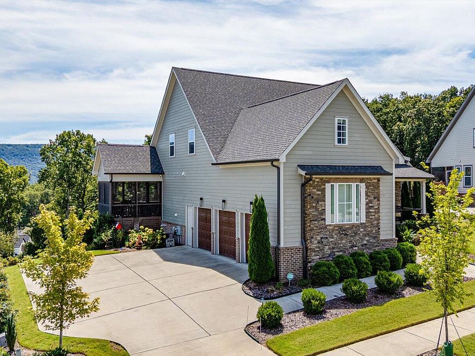 Welcome to the prestigious Black Creek Community, where luxury combines with resort-style living at its best. This exclusive neighborhood offers unparalleled amenities including a championship golf course, clubhouse, dining, swimming pool, fitness center, and miles of hiking trails. This beautifully designed home at 1201 LeConte Circle was custom built by Curate Home Builders and offers many unique features. The open-concept floor plan boasts outstanding views, three bedrooms, three full bathrooms, engineered hardwoods, decorative lighting, the primary suite on main level, bonus/recreation room, and three car garage. You will be welcomed by a covered front porch and double 8 foot doors that open into the attractive two story foyer. A well appointed guest bedroom and full bathroom are located off of the hallway. The centrally located Great Room features a soaring vaulted ceiling, creating a bright and airy atmosphere. The gas log fireplace and recessed lighting add to the relaxed ambiance, and this living space is open to the kitchen and dining area. Spacious primary bedroom is located off of the Great Room and includes a sitting area, tray ceiling, crown molding, linen closet and beautiful views. Primary bathroom includes a separate bathtub, glass shower with heat lamp, double sink vanities, and walk-in closet. The gourmet kitchen offers all stainless appliances, soft-close cabinetry, tile backsplash, large center island with double stainless sink, built-in cabinetry, pendant lighting, and plenty of room for seating. Kitchen/dining area includes a custom built-in china cabinet, as well as a large picture window. Spacious screened porch off of the kitchen provides the perfect retreat to relax and enjoy the stunning mountain views, and includes a gas stove and ceiling fan. Upstairs you will find the third bedroom with excellent closet space, as well as a full bathroom. Spacious bonus room is located upstairs, and includes an alcove with built-in desk. You will also find excellent storage space on the second level with two separate walk-in attics, one of which could easily be converted to another bedroom or flex space. Three car garage includes an EV electric car charging outlet and the extended driveway has additional space for parking. Other amenities include 9 foot ceilings on the first and second levels and 8 foot doors on the main level. Outdoor areas are professionally landscaped, and include a RainBird irrigation system. Whether you are seeking tranquility, recreation, or a strong sense of community, Black Creek offers a wonderful blend of luxurious living along with the convenience of being only minutes from downtown Chattanooga.