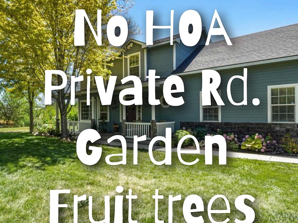 The perfect IDAHO retreat!!! Freedom of NO HOA. A peaceful front & back porch ready to enjoy the cool, crisp autumn breezes. Remodeled (Kitchen, bathrooms, flooring, interior & exterior paint, lighting & plumbing fixtures). Kitchen is spacious w/ an oversized island ready for you to host your next gathering. 4 generous sized bedrooms. Laundry space on main floor. The lot is spacious & tucked away on a private cul-de-sac w/ mature landscaping, a producing garden area + fruit trees (red & green baking apple, peach). Imagine setting up a fruit & vegetable stand at the road to share your produce! Plenty of room to store your toys, build a shop, bring your animals + more. Oversized moveable storage shed is a bonus w/ unlimited possibilities for you to personalize + 2 car attached garage (potential living space, if needed). Property is located out of city limits.