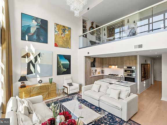 A rare find in one of Old Town’s premier waterfront condominiums! Dramatic 19' ceilings, light filled and refined, this two-story, 1 bedroom and den, 1.5 bathroom, 1,665 sq. ft. residence is framed by exquisite details, oversized two-story windows, 7.5” wide oak wood floors and much more. Located in a special "wing" of the building shared with just 2 other residences, this home is designed for the discerning chef: the open-concept kitchen showcases sophisticated Italian Snaidero cabinetry, Bosch appliances, and quartz countertops—complete with an island featuring deep storage drawers, counter seating, and a built-in wine cooler/beverage refrigerator. Dramatic floor-to-ceiling windows with automatic shades and custom drapery in the two-story living room, flood the home with natural light. An upper level loft is perfect for lounging and a home office and is equipped with California closet built-ins and laundry closet. Unwind in the private primary suite, highlighted by custom walk-in closets, and a spa-inspired bath boasting a dual-sink vanity, LED backlit mirrors and Waterworks fixtures. A spacious den which is currently used as a large walk-in closet made by California Closets, is also perfect for a home office or extra bedroom. Upgrades in the home include high quality bevelled mirrors in the bathroom and closet doors, new elegant finishes, a show-stopping chandelier that accentuates the main level's 19-foot ceilings; the home will also wow you with thoughtfully designed custom closet systems featuring gleaming rods, integrated dresser drawers, smart shelving, and useful hooks - maximizing storage in the primary suite and guest bedroom/den. Included with this residence are two rare perks for condo living: A sizable storage unit and two deeded garage parking spaces with prime location, delivering a true lock-and-leave lifestyle. Meanwhile, Muse pampers residents with top-tier amenities: a 24-hour concierge, on-site manager, and building engineer ensure an easy living experience, while the penthouse clubroom—complete with a full kitchen, outdoor grills, plus generous indoor and outdoor seating—offers stunning panoramas of DC’s monuments, the Potomac River, and Old Town’s skyline. A penthouse-level fitness center and yoga studio (with an outdoor training terrace) feature state-of-the-art equipment to keep you active year-round. Positioned steps away from the Mount Vernon Trail and mere moments from vibrant Old Town’s shops, restaurants and Saturday Farmer’s Market, the Metro, Reagan National Airport, Amazon HQ2, National Harbor, and DC. Muse flawlessly merges convenience, modern design, and upscale amenities. If you’ve been dreaming of a refined waterfront sanctuary in Old Town, don’t let this rare opportunity pass you by. Embrace luxury waterfront living—make Muse your next home. For floor plan, please see Documents section.