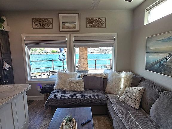 The Sundance Villas have returned to the Parker Strip, now more breathtaking than ever, boasting nearly half a mile of pristine beachfront and commanding the most desirable riverfront position at Sundance Resort. Featuring a thoughtfully designed two-bedroom, two-bath split layout, the villa is oriented so that the living space faces the river, offering stunning water views through every front window. Recent enhancements—such as a massive, custom-engineered freestanding patio cover, bespoke furnishings throughout, and a full interior redesign by a professional designer—have artfully optimized the space. Situated on the widest, most attractive stretch of sand, the property affords easy boat dock access and is surrounded by resort amenities including a restaurant, convenience store, pickleball courts, paved roads, and immaculate beaches. Never rented, this upscale villa remains in pristine, move-in-ready condition, presenting a rare opportunity to own luxury riverfront real estate. don’t miss out; call today!